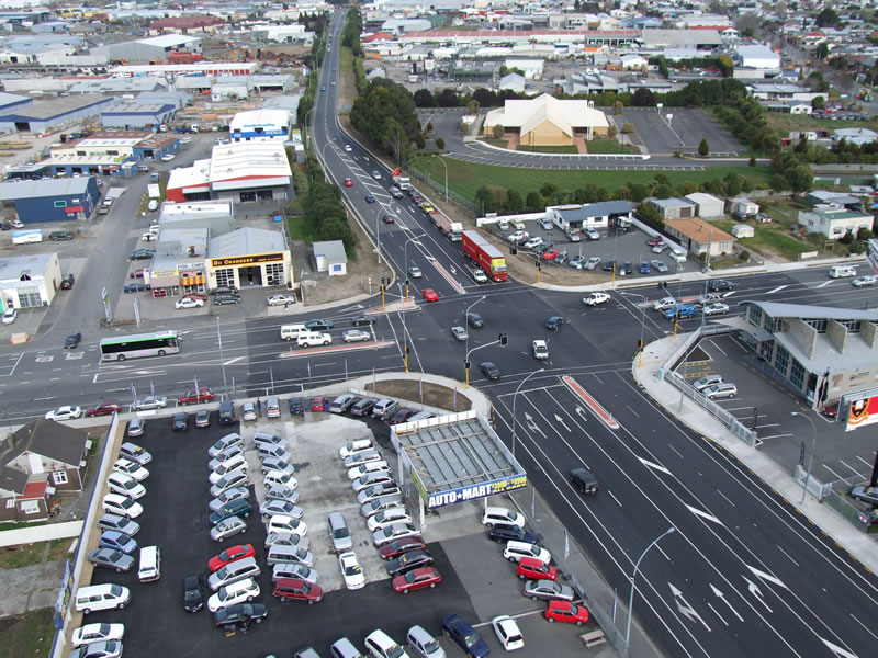 Project details: This contract was situated on the intersection to New Zealand’s largest shopping centre The Base. Traffic count averaged 32,000 vehicles per day. Construction involved removing the existing roundabout, widened the road and rebuilding the entire pavement within the intersection. This provided room for additional lanes and new traffic signals, resulting in improved access to the Base Shopping Complex. The contract also involved service upgrades, footpaths, board walks and safety improvements. There were minimal traffic delays and we completed the contract on time and within budget.